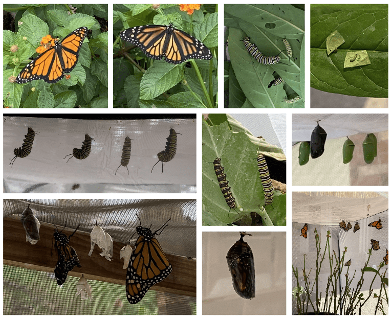 Our journey started with a Monarch plant. One day, a butterfly came passing by…. and started to lay some eggs.