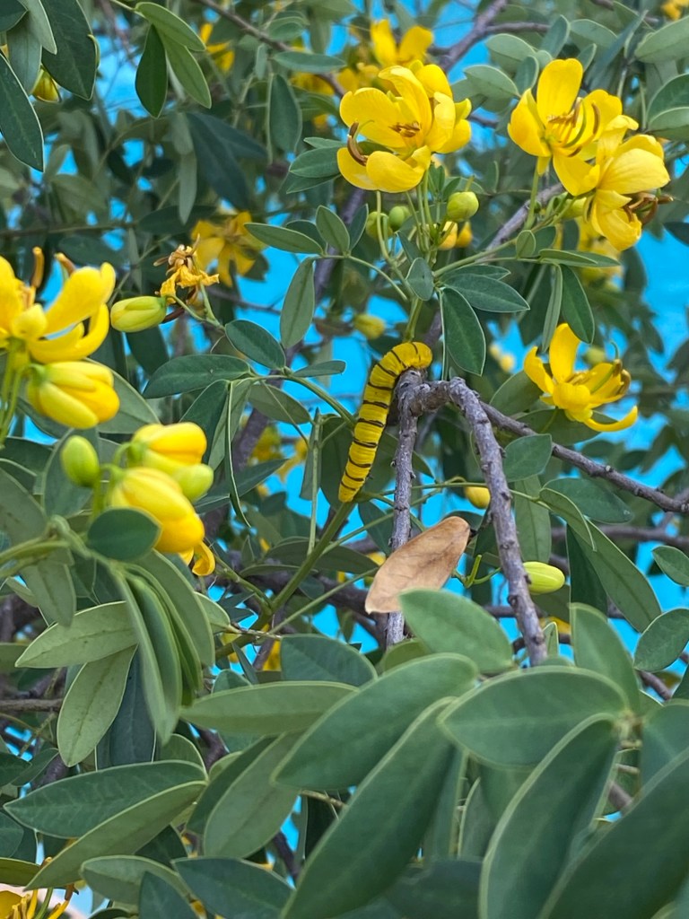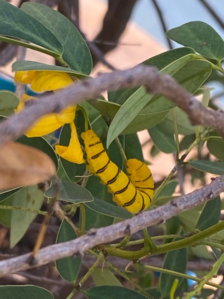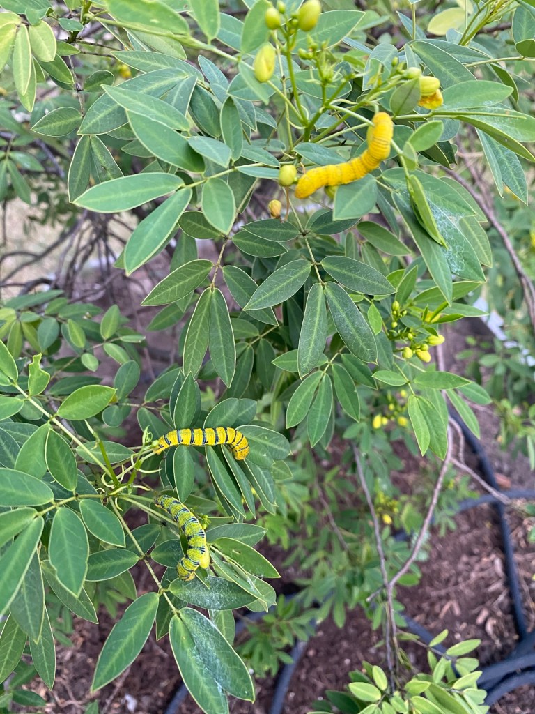 These Cloudless Sulphur caterpillars and butterflies are the latest addition to our garden!