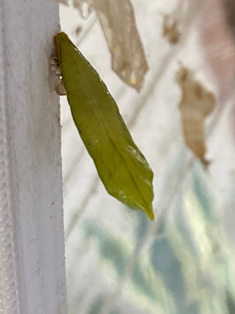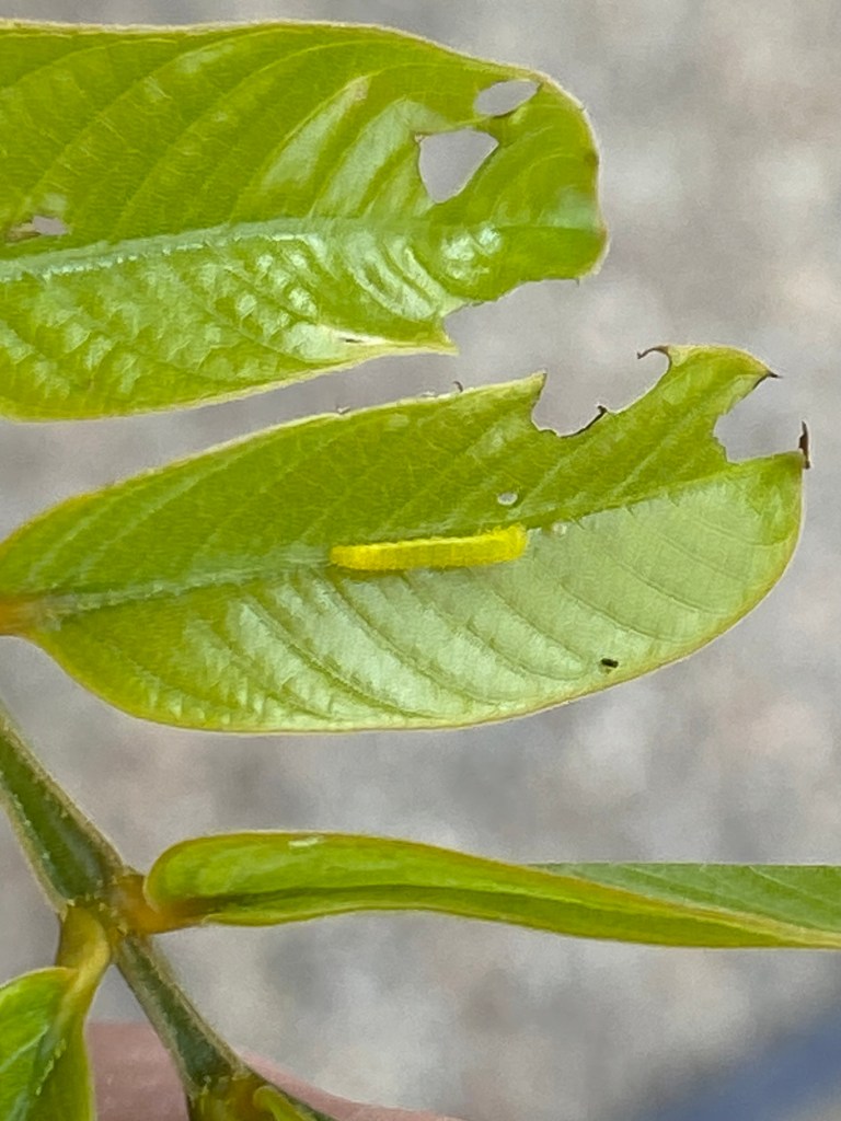 The caterpillars can be yellow or green and their chrysalis resembles a smooth small leaf.